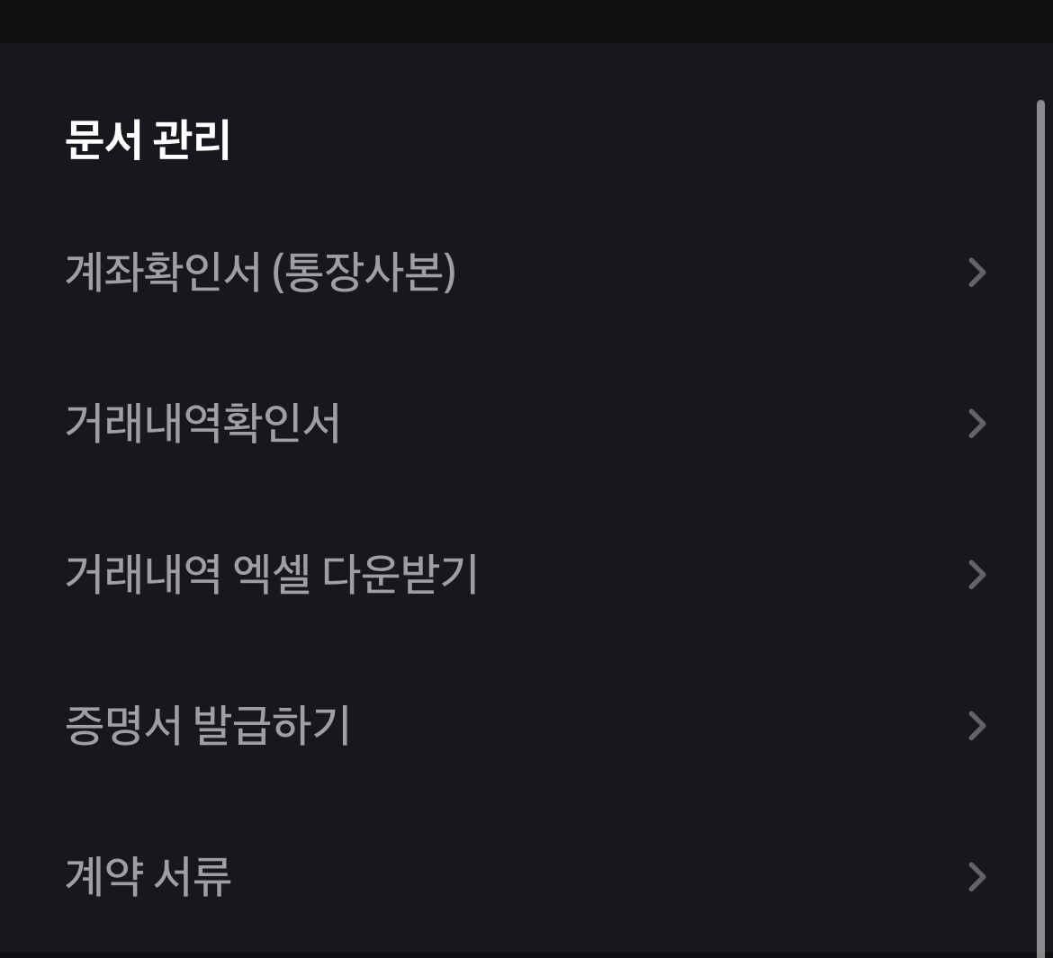 화면 하단에 위치한 ‘계좌확인서(통장사본)’ 메뉴를 눌러주세요.