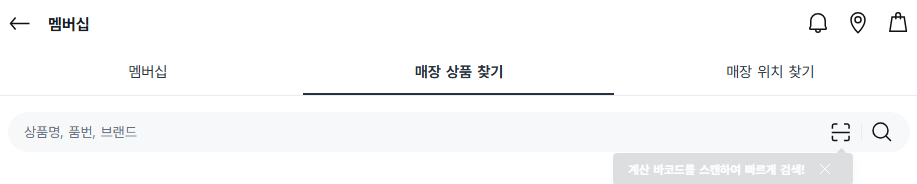 ✅ '매장 상품 찾기' 메뉴를 선택합니다.